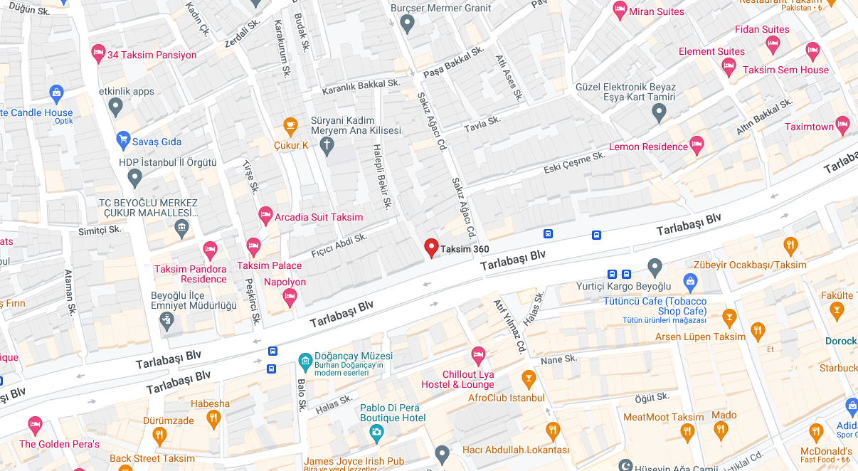 - Çukur Mah. Tarlabaşı Bulvarı No:150-170 Taksim 360 Office:4 Beyoğlu/Istanbul/Turkey